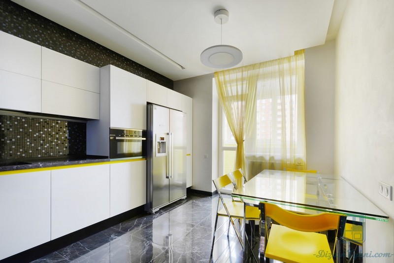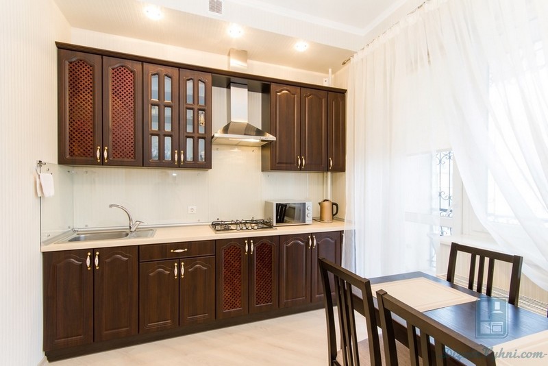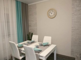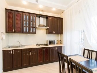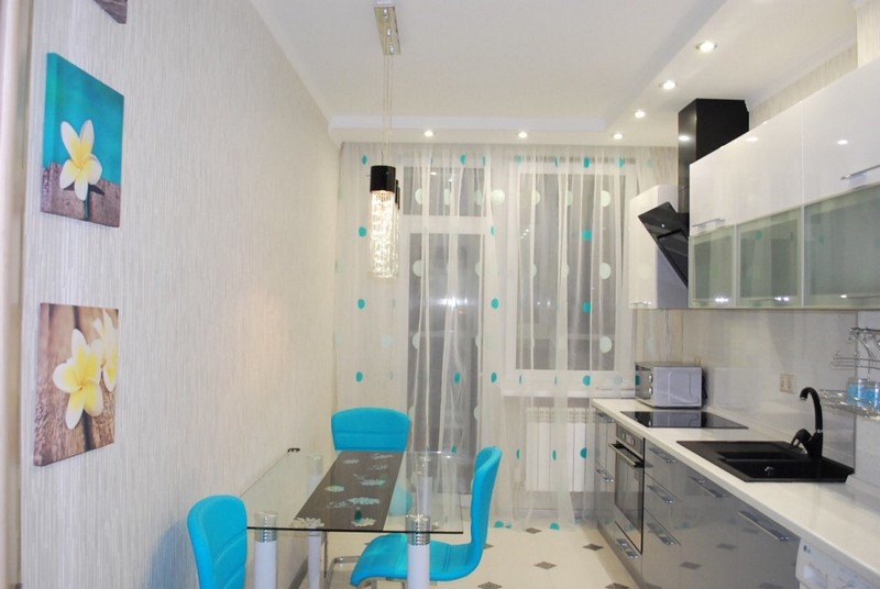 Es müssen keine übermäßig massiven Vorhänge für die Küche oder umgekehrt dünne Vorhänge gekauft werden. Angesichts der Tatsache, dass auf dem Küchenherd häufig Feuer brennt, sollten Modelle aus nicht brennbarem Stoff bevorzugt werden.