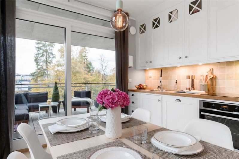 So müssen die Vorhänge für die Küche mit Zugang zur Loggia die Grundvoraussetzungen erfüllen:
