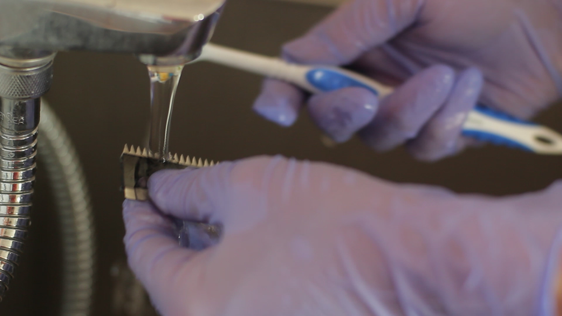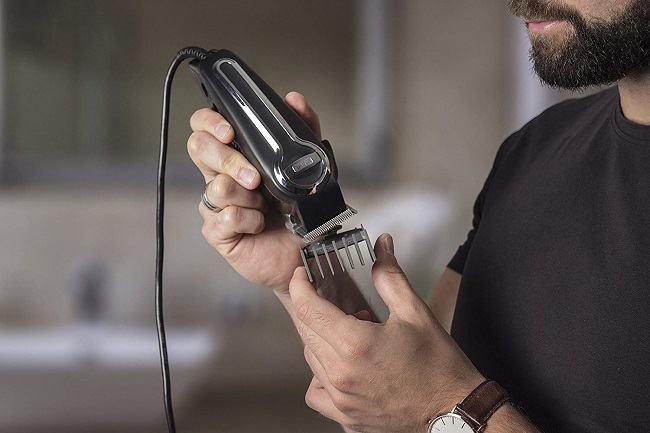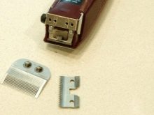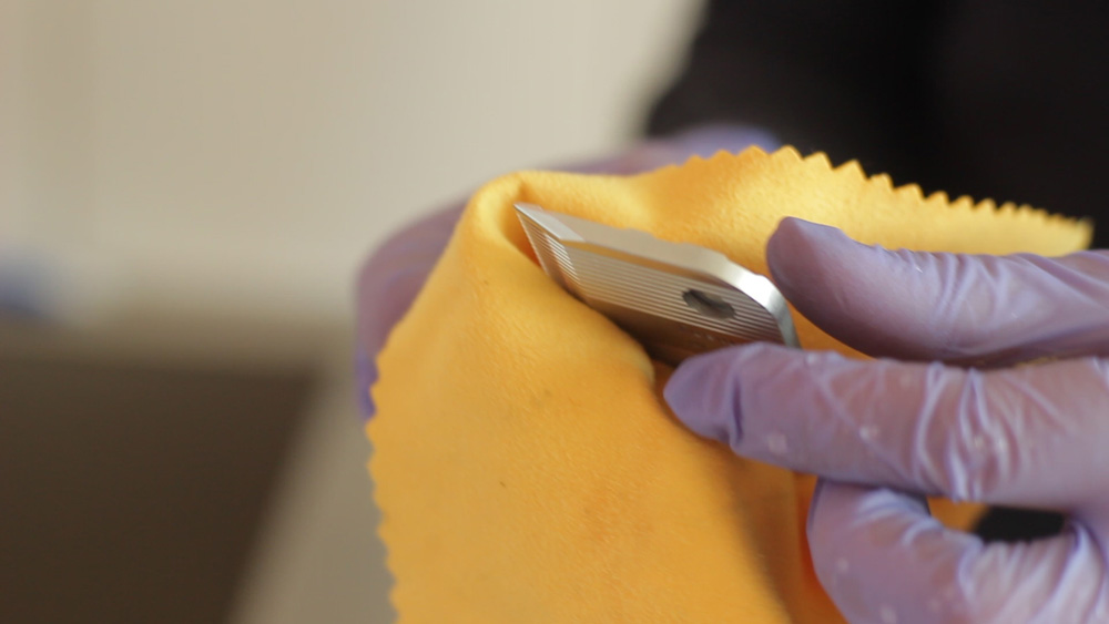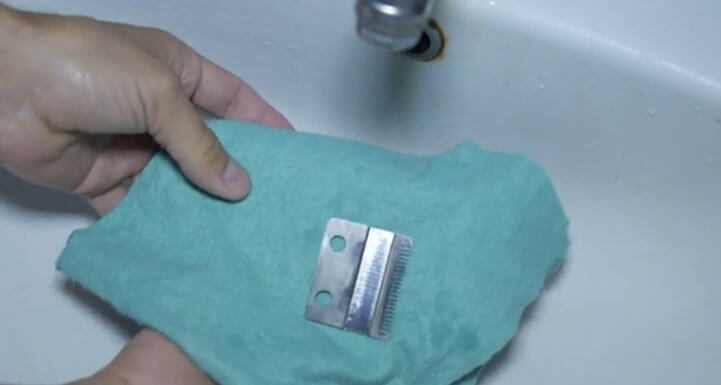 - Schärfen Sie die Klingen einer Friseurmaschine, spülen Sie sie anschließend gründlich aus und trocknen Sie sie.
