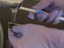 - Richtiges und hochwertiges Schärfen der Messer sorgt für die Reinigung aller Teile. Eine gewöhnliche Zahnbürste kann in diesem Fall zu einem effektiven Werkzeug werden, das neben Schmutz auch Rostspuren entfernen kann.