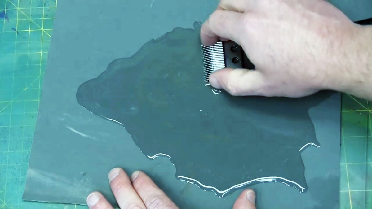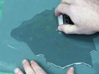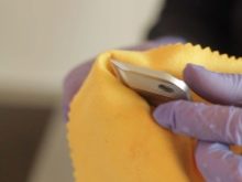 - Auftragen einer Schleifpaste auf die Scheibe. Es wird empfohlen, dabei Gummihandschuhe zu tragen. Entlang des Radius werden vier Pastenstreifen aufgetragen, die dann gleichmäßig über die gesamte Fläche verteilt werden.