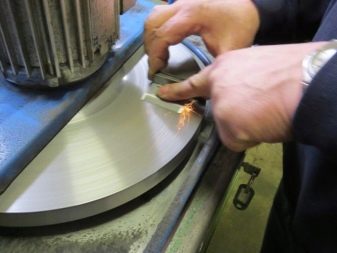 Mit zwei Arten von Schleifgeräten ist es möglich, die Messer der Schermaschine effizient und schnell genug zu schärfen. Die Rede ist von Bandgeräten und mit speziellen Kreisen ausgestattet. Der Hauptnachteil der zweiten Option ist die fehlende Einstellung der Drehzahl der Schleifscheibe. Am häufigsten wird diese Technik zum Schruppen (Schruppen) der Schneidkante verwendet.