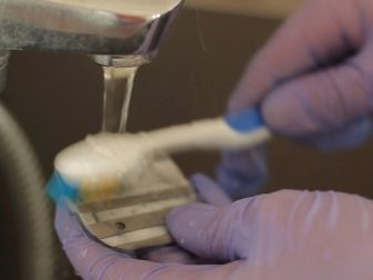 Um große Korrosionsspuren zu entfernen, wird die Verwendung von Reinigungs- (Sanitär-)Produkten empfohlen. Übrigens reicht es oft nach einer gründlichen Reinigung, den Messerblock zusammenzubauen und wieder einzusetzen. Das bedeutet, dass in solchen Fällen kein Schärfen erforderlich ist und der Grund für alle Probleme die Verschmutzung des Messerblocks war. Wenn solche Manipulationen nicht zu den gewünschten Ergebnissen geführt haben, müssen die Messer auf eine der unten beschriebenen Weisen bearbeitet werden.