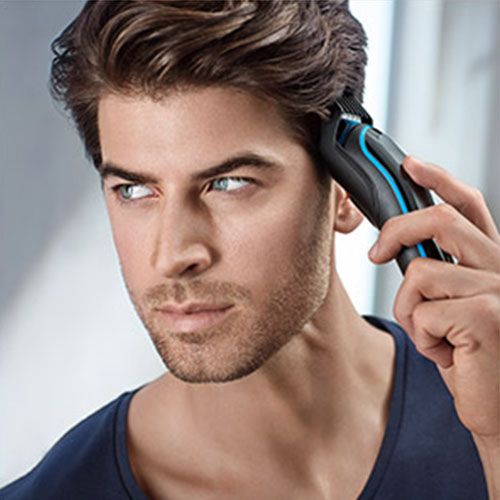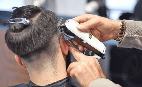 - Während des Betriebs der Maschine verspürt der Kunde Schmerzen. Es handelt sich um die geringsten Beschwerden während eines Haarschnitts.