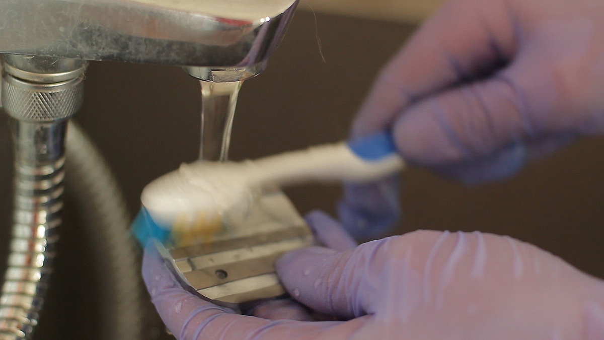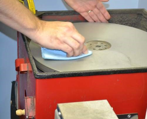 - Abspülen von bearbeiteten Klingen und Entfernen von Schleifpastenresten.