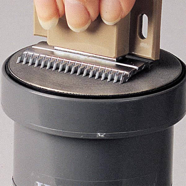 - einen kleinen Behälter mit Wasser, um die Klingen zu benetzen.