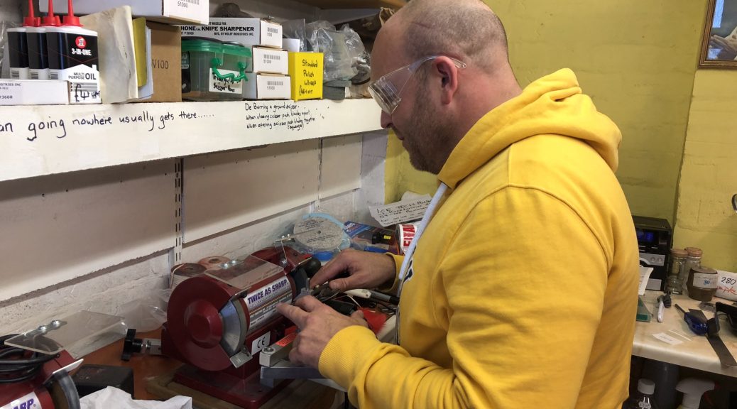 - Schleifen Sie die Klingen mit einem feinkörnigen Stein.