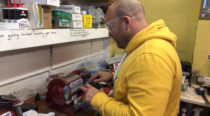 Es ist wichtig, dem ersten Punkt entsprechende Aufmerksamkeit zu schenken. Sie sollten mit der Durchführung aller Manipulationen mit einer kompetenten Vorbereitung des Arbeitsplatzes beginnen, um die angenehmsten Bedingungen zu schaffen. Es ist wichtig, die Notwendigkeit einer ausreichenden Beleuchtung zu berücksichtigen. Alle verwendeten Werkzeuge und Verbrauchsmaterialien sind so positioniert, dass sie bequem mitgenommen werden können. Es ist erwähnenswert, dass sie mit dem Schärfen beginnen, indem sie die Messer entfernen.