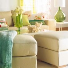 Was die Farben und das Design betrifft, hängt alles von den Merkmalen des Innenraums ab. Der Pouf sollte mit dem Dekor kombiniert werden, damit alle Artikel miteinander harmonieren. Sie können einen Farbton aus dem gleichen Farbschema wählen, das im Raum vorherrscht, oder einen kontrastierenden Ton wählen - dann wirken die Möbel als Akzent. Häufiger entscheiden sich Kunden für dunklere Farben, weil sie im Alltag praktischer sind. Leichte Polster erfordern eine sorgfältige Behandlung, Schmutz und Staub darauf fallen sofort auf.