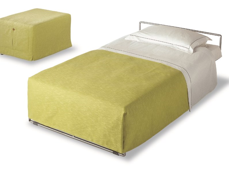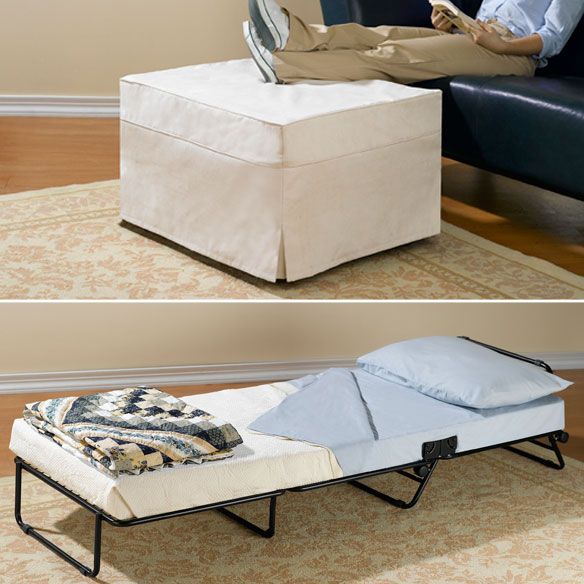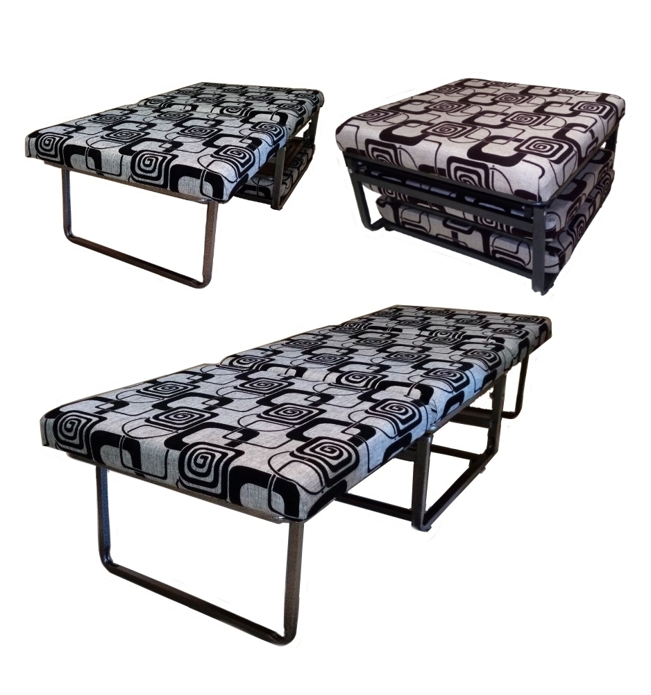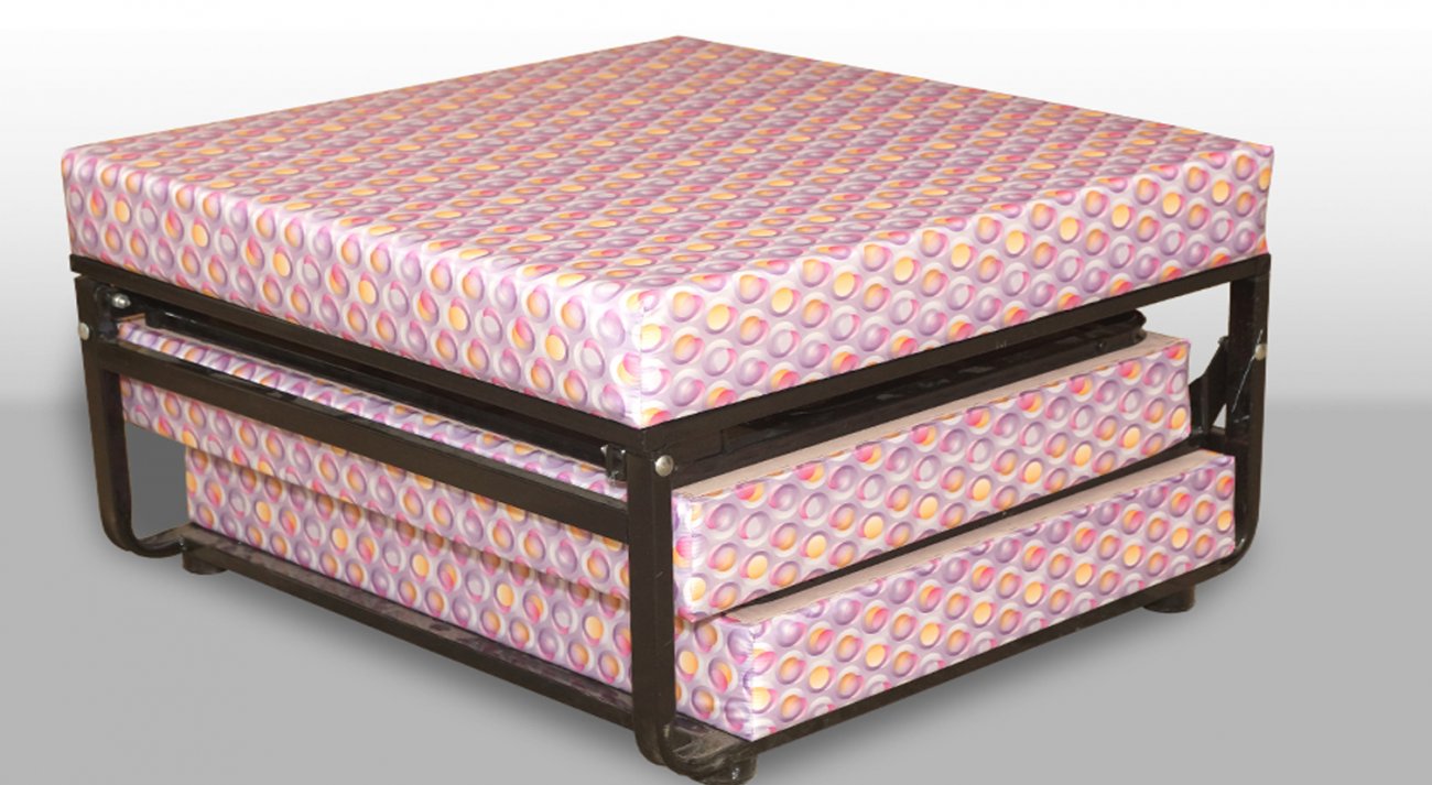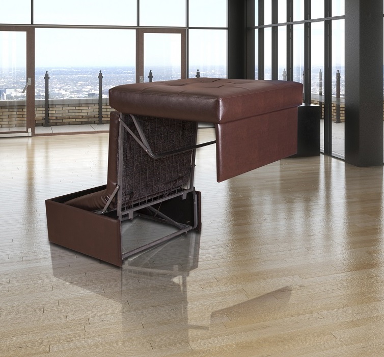 Komfortabler Mechanismus. Der wandelbare Pouf lässt sich ganz einfach in ein Zustellbett umbauen, ohne große Anstrengungen zum Ausrollen des Bettes zu unternehmen.