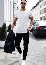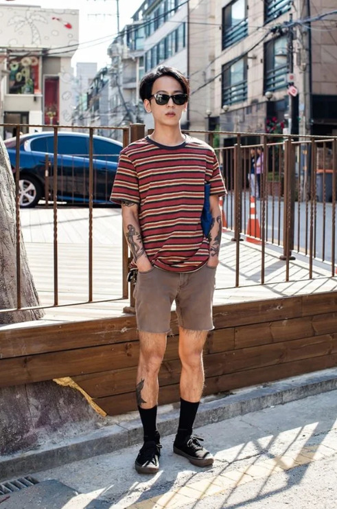 Im Sommer tragen Männer oft Shorts und T-Shirts und bevorzugen Turnschuhe oder Turnschuhe von Schuhen. Ad hoc es ist besser, kurze Socken zu wählen, die für andere nicht sichtbar sind... Es wird empfohlen, Shorts in hellen Tönen oder Denim, ein T-Shirt - weiß zu tragen. Dies gilt als klassische Option für alle. Wer Abwechslung will, trägt sandfarbene Shorts, ein khakifarbenes T-Shirt und Turnschuhe. Loafer sind ebenfalls erhältlich.