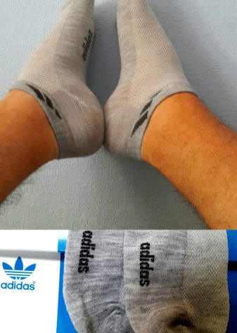- Stichworte. Die Fälschung hat auf beiden Socken die gleichen Tags. Tatsächlich sollten sie anders sein - das ist der Haupttrick des Unternehmens Adidas.
