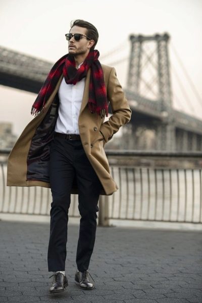 Um einen Look für den Gang ins Büro zu kreieren, Es wird empfohlen, unsichtbare Socken und Slipper, Schuhe mitzunehmen. Wenn es draußen kalt ist, können Sie helle schwarze Socken und einen Anzug im gleichen Farbton tragen. Sie können ein schwarzes T-Shirt oder einen Golf unter der Jacke tragen. Als Zubehör eignen sich sowohl eine Aktentasche als auch eine Sporttasche perfekt. Das Fell sollte ebenfalls schwarz oder hellbraun sein, und der Schal sollte oben herum gewickelt werden.