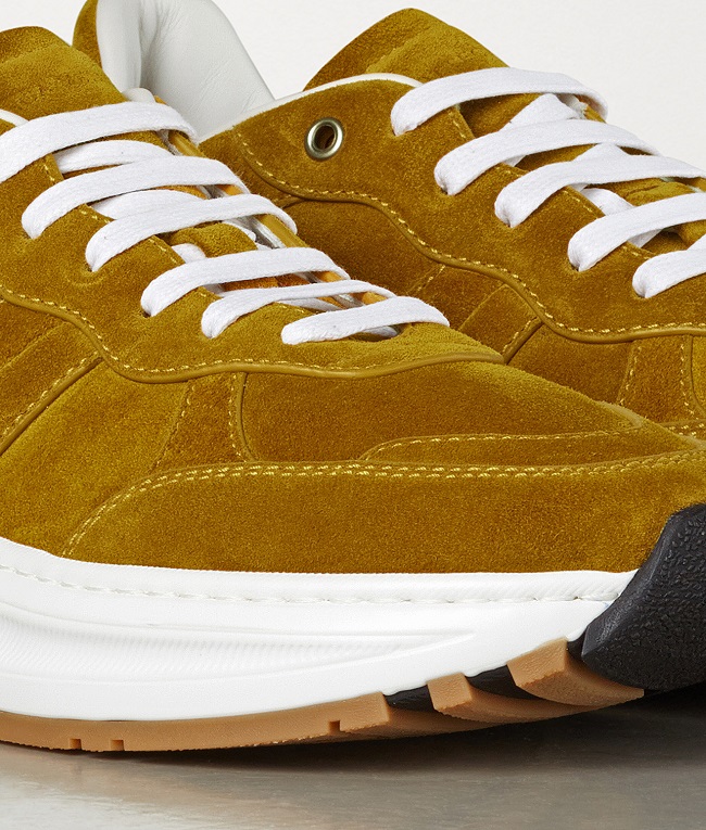 Für Casual-Liebhaber sind die Leder-Sportsneaker von Bottega Veneta in einer Vielzahl von Farben erhältlich. Auf der Sohle befindet sich ein Rillenmuster, das den Sneakers Originalität verleiht. Darüber hinaus gibt es einen tiefen und zuverlässigen Protektor, dank dem Ihr Fuß auch auf nassen und instabilen Oberflächen nicht abrutscht. Der Marktwert eines solchen Paars Schuhe beträgt etwa 47 Tausend Rubel.