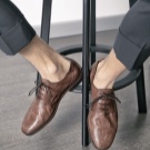 Wenn Schuhe zum Ausgehen zu Veranstaltungen oder Arbeitstreffen benötigt werden, reichen Halbschuhe oder Slipper. Sie erstellen ein vollständiges Bild des Bildes der Person. Passend zu einem klassischen Anzug oder einer dunklen Röhrenjeans und einem Hemd.