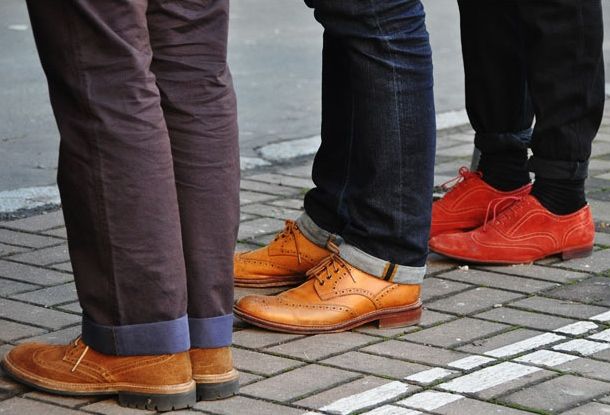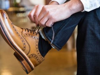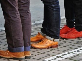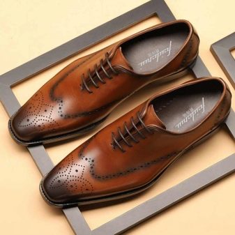 - Brogues - traditionelle Sommerschuhe, die sich durch das Vorhandensein von Perforationen auszeichnen. Meistens wird es entlang der Nähte und am Zeh platziert. Je größer die Perforation, desto weniger formelle Schuhe werden berücksichtigt. Brogues gibt es sowohl in Schwarz als auch in Bunt. Zweifarbige Modelle werden erkannt.