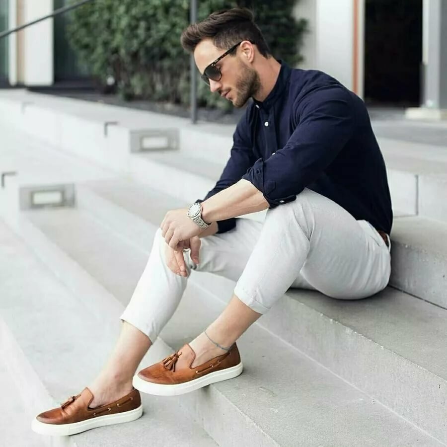 Eine der beliebtesten Arten von Herrenschuhen für die Frühjahr-Sommer-Saison. Er wird von Männern bevorzugt, die immer versuchen, perfekt auszusehen. Loafer kreieren einen schicken Look in Kombination mit einem Business-Anzug oder für einen lässigen Urban-Style mit einer Cropped-Hose mit offenen Knöcheln.