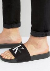 - Mit Kulisse. Backed Flip-Flops sind Sandalen. In der männlichen Version werden sie in Form eines breiten Leder- oder Gummibandes befestigt, oft ergänzt durch einen ringförmigen Riemen um den Knöchel.