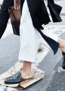 Weiße Hausschuhe passen gut zu Leinenhosen und -jacken, Poloshirts. Streetstyle-Liebhaber können ein enganliegendes Hemd und Bermuda-Shorts mit Schiefer tragen. Für einen Strandurlaub sind helle, rutschfeste Flip-Flops absolut unersetzlich - sie werden mit einer Bräune, engen T-Shirts und Shorts kombiniert. Für das Büro in der Sommerhitze eignen sich Slip-On Espadrilles, die sich harmonisch in die strengste Kleiderordnung einfügen.