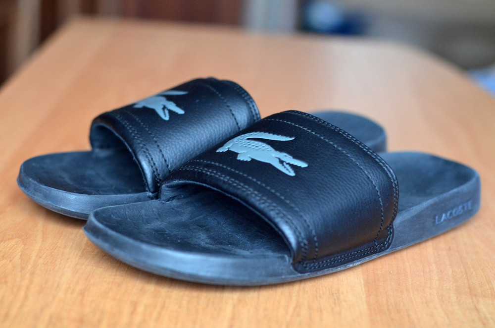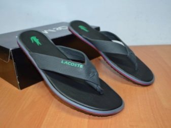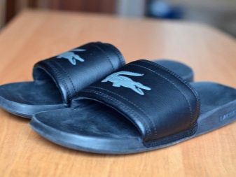 Markenpantoffeln für Herren mit einem Firmenlogo in Form eines Krokodils sehen sehr originell aus. Das Unternehmen wählt für seine Produkte hochwertige Materialien - Formgummi, Textilien, Kunstleder. Schneeweiße Strandmodelle mit grünem Krokodil, bedruckte Varianten mit Buchstaben und Flip-Flops in Grau-Gelb sehen interessant aus.