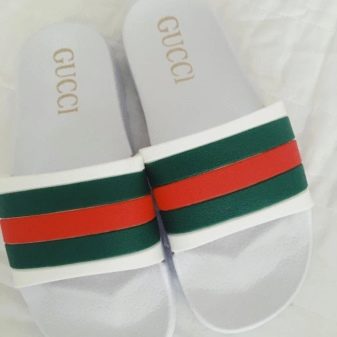 Italienische Marken waren schon immer die Flaggschiffe des Modemarktes. Gucci Flip Flops sehen aus wie ein wahres Kunstwerk. Die Produktpalette der Marke umfasst Ledermodelle im Safari-Stil in Schwarz und Braun mit anatomisch korrektem Design, das die Struktur des Fußes berücksichtigt.
