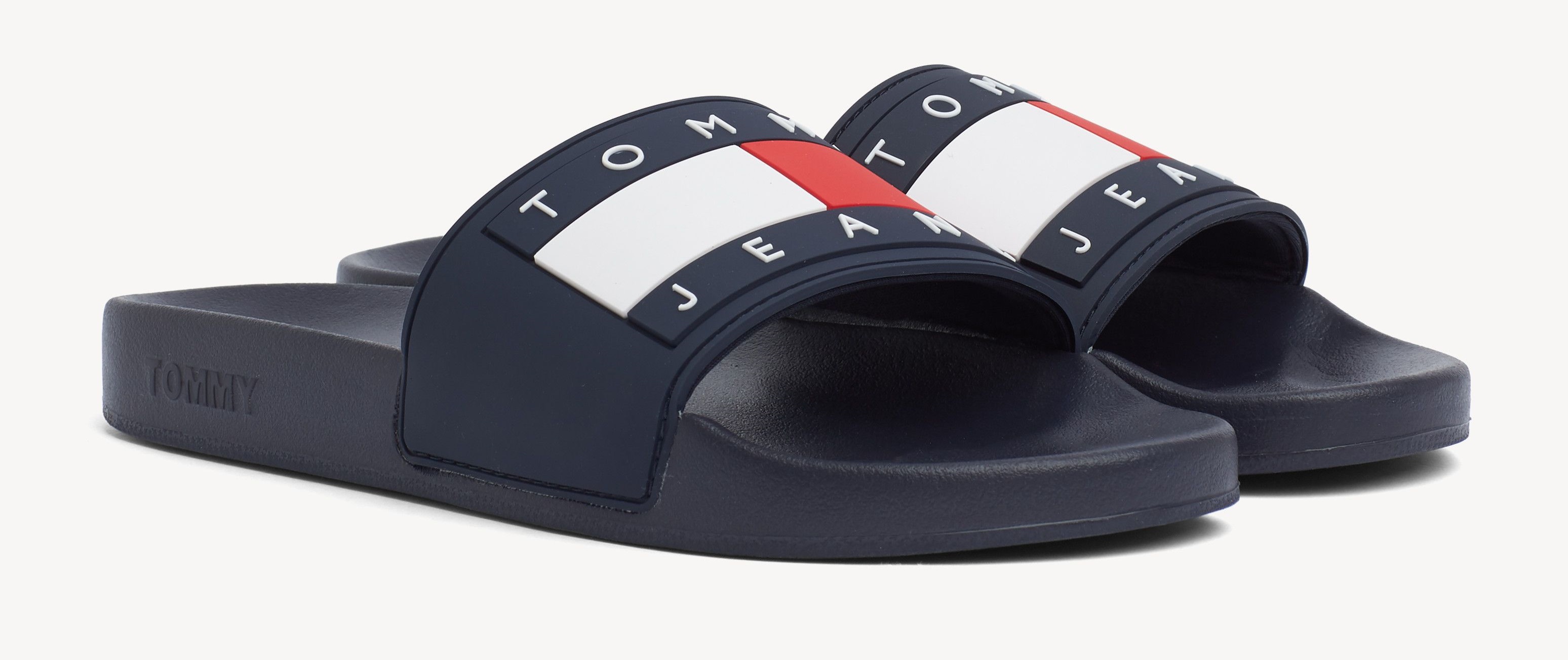 Die Hauptfarben des Flip-Flops-Designs (weiß, blau, rot) wiederholen die Farbskala der Nationalflagge. Auch Flip-Flops für den Strand und lakonische weiß-schwarze Modelle mit dem Firmenlogo hat die Marke in ihren Kollektionen.