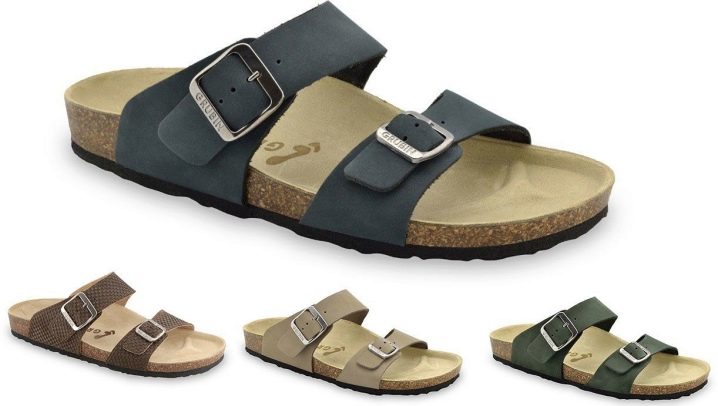 Rutschen mit Naturkorksohle haben dämpfende Eigenschaften. Sie sind hypoallergen, atmungsaktiv und langlebig. Am häufigsten haben urbane Lederpantoffeln mit geschlossenen oder offenen Zehen eine solche Sohle. Solche Modelle sehen seriös aus, dienen lange und werden von bekannten Marken hergestellt.
