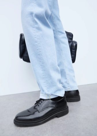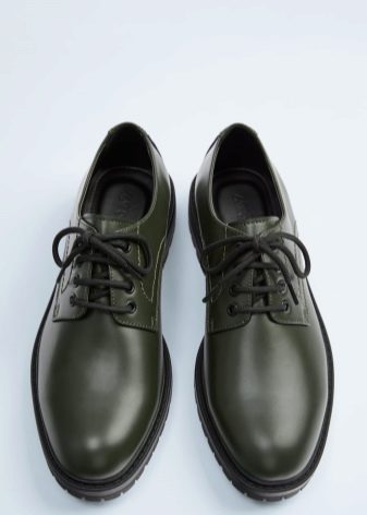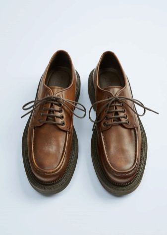 - Lederschuhe mit dicker Sohle. Dies sind Schuhe im Retro-Stil. Die Zunge besteht aus mehreren kombinierten Materialien. Es gibt Ziernähte, Schnürung für 5 Paar Ösen, eine Lederdecksohle, eine dicke Sohle mit Rillenmuster, eine abgerundete Nase.