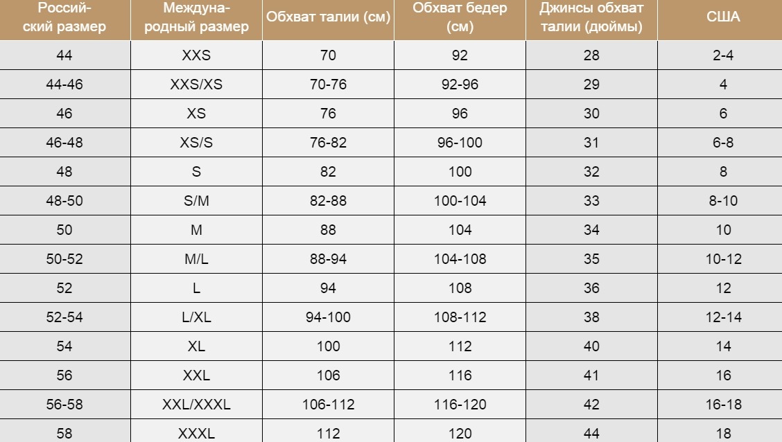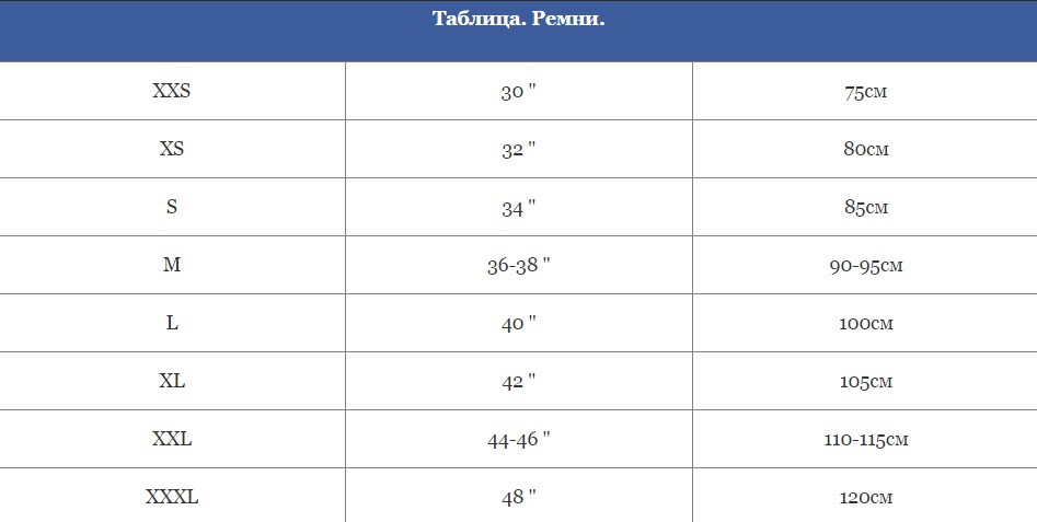 Größentabellen werden nicht nur für die Auswahl von Kleidung, sondern auch von Accessoires verwendet. Die meisten stärkeren Geschlechter tragen Hosen und Jeans mit Gürtel, daher ist die folgende Tabelle für sie besonders nützlich.