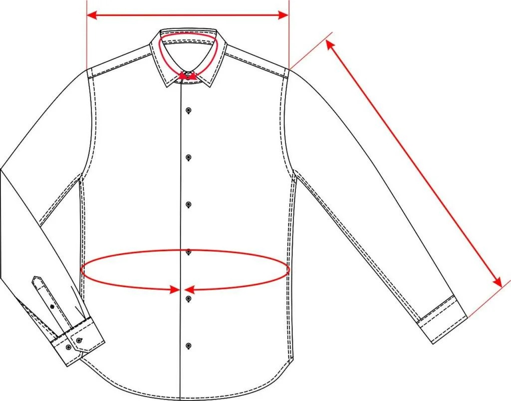 Das Bild zeigt deutlich, wie Maße für ein klassisches Hemd.
