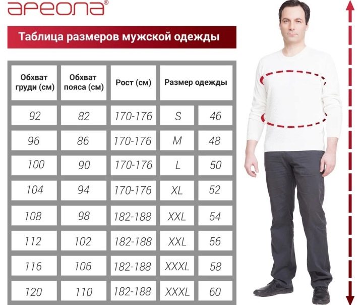 Unabhängig davon lohnt es sich, die Parameter für große Männer zu berücksichtigen, deren Körpergröße 175, 180, 185 cm und mehr beträgt. Es ist zu beachten, dass bei einer solchen Erhöhung der Umfang von Taille, Hüfte, Hals und Brust die Standardindikatoren deutlich überschreitet.