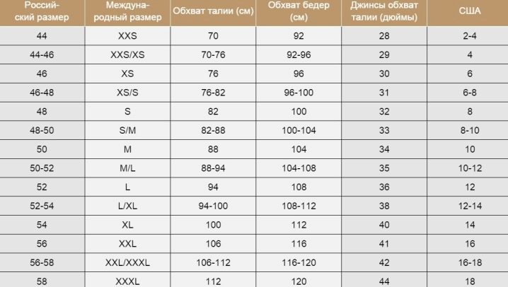 Wie Sie sehen, können Sie Ihre Größe ganz einfach herausfinden. Genug nimm Messungen vor und vergleiche sie mit der Tabelle, die verwendet werden kann, um russische und internationale Markierungen zu identifizieren.
