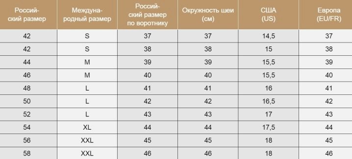 - Wenn Sie sich für einen Anzug entscheiden, aber mit einer Diskrepanz zwischen den Parametern von Oberteil und Unterteil konfrontiert sind, müssen Sie die Parameter des Oberteils, beispielsweise einer Jacke, zugrunde legen.