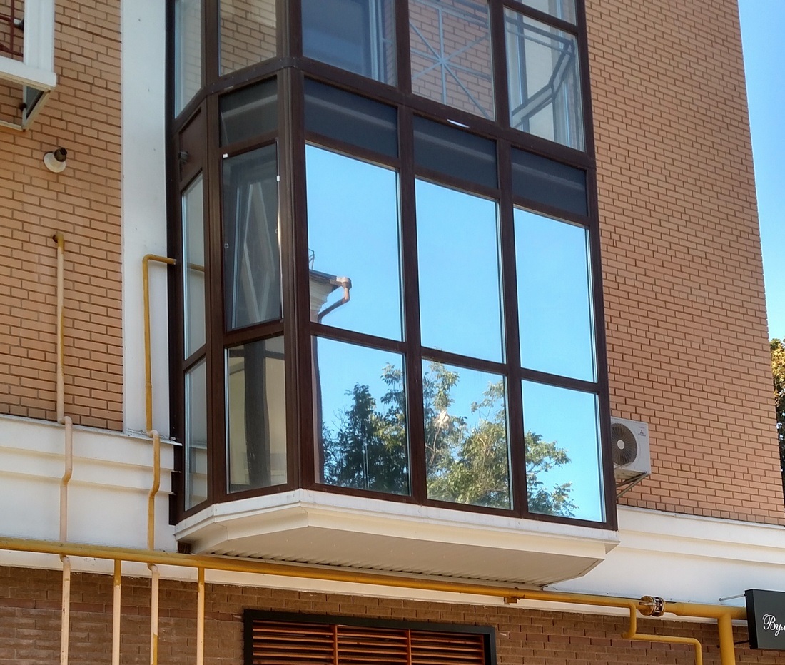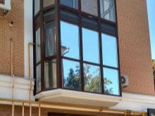 - Getönt. In diesem Fall wird die Verglasung mit einer Farb- oder Spiegelfolie beschichtet, auch der nachträgliche Einbau auf fertige Konstruktionen ist möglich.Diese Lösung sieht origineller aus, lässt aber weniger Licht herein. Spiegelfolien werden oft als Schutz vor übermäßiger Erwärmung des Balkons im Sommer installiert.