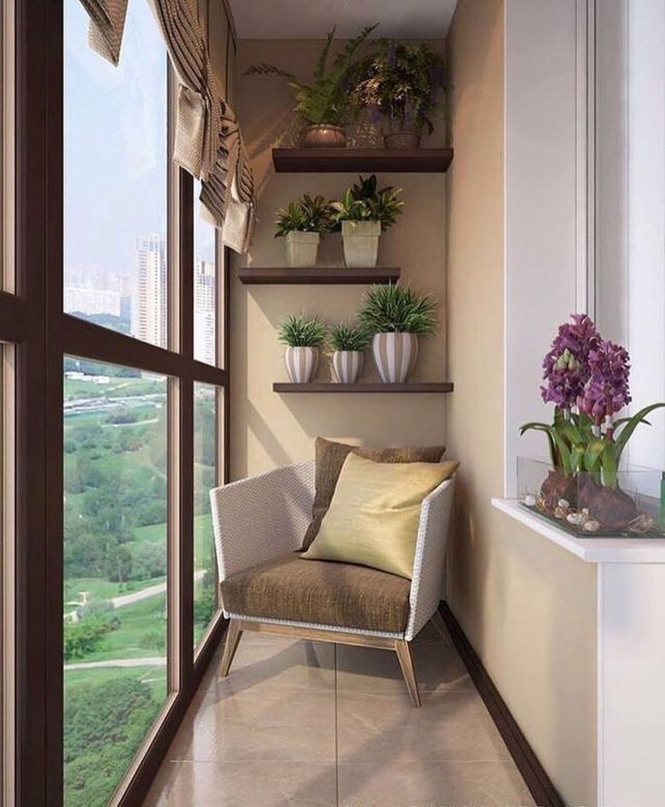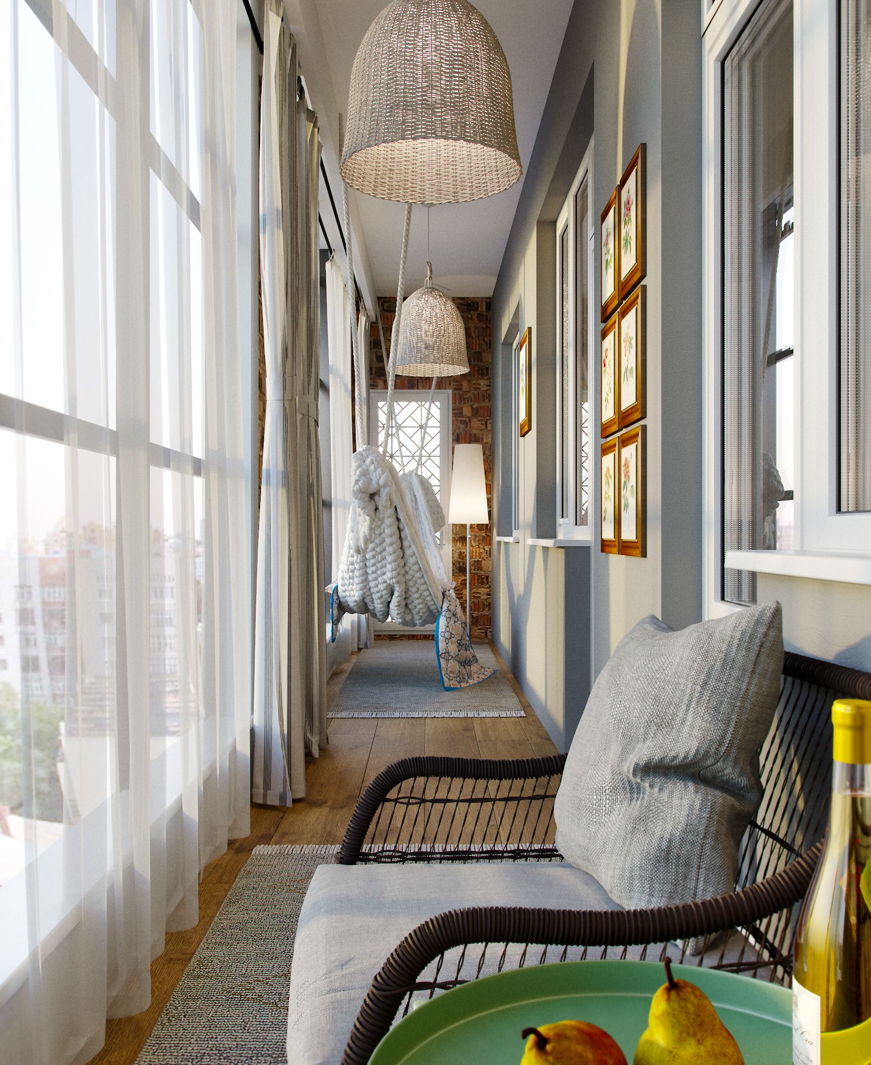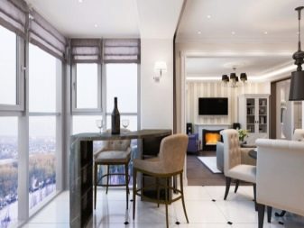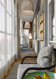 Die französische Verglasung kann mit origineller Beleuchtung, einem System von vertikalen oder horizontalen Jalousien, Raffrollos, hängenden Blumentöpfen ergänzt werden. Jedes Detail verleiht dem Äußeren des Balkons einen besonderen Charme.