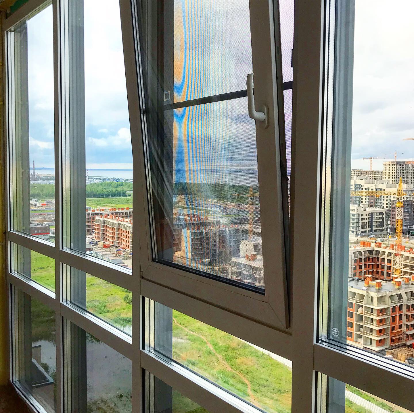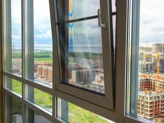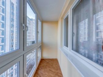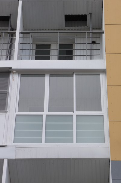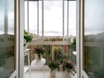 In Mehrfamilienhäusern werden anstelle eines vollwertigen Blocks mit Schiebetüren am häufigsten französische Fenster eingebaut. Sie haben eine blinde Unterseite des Rahmens und eine ausschwenkbare Oberseite. Dies ist eine Kompromisslösung, die kalt oder warm umgesetzt werden kann.