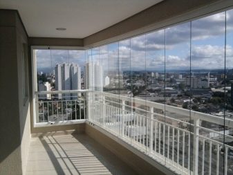 Die französische Verglasung eines Balkons oder einer Loggia wird manchmal auch als "Fenster-Tür"-System bezeichnet, da sie aus großformatigen Schaukel- oder Schiebekonstruktionen mit Rahmen aus Aluminium, Metall-Kunststoff besteht. Im städtischen Wohnungsbau wird diese Option hauptsächlich in Sichtwohnungen und Wohnungen verwendet, um das Eröffnungspanorama so beeindruckend wie möglich zu gestalten. Französische Verglasung impliziert die Ablehnung der Verwendung der Brüstung.