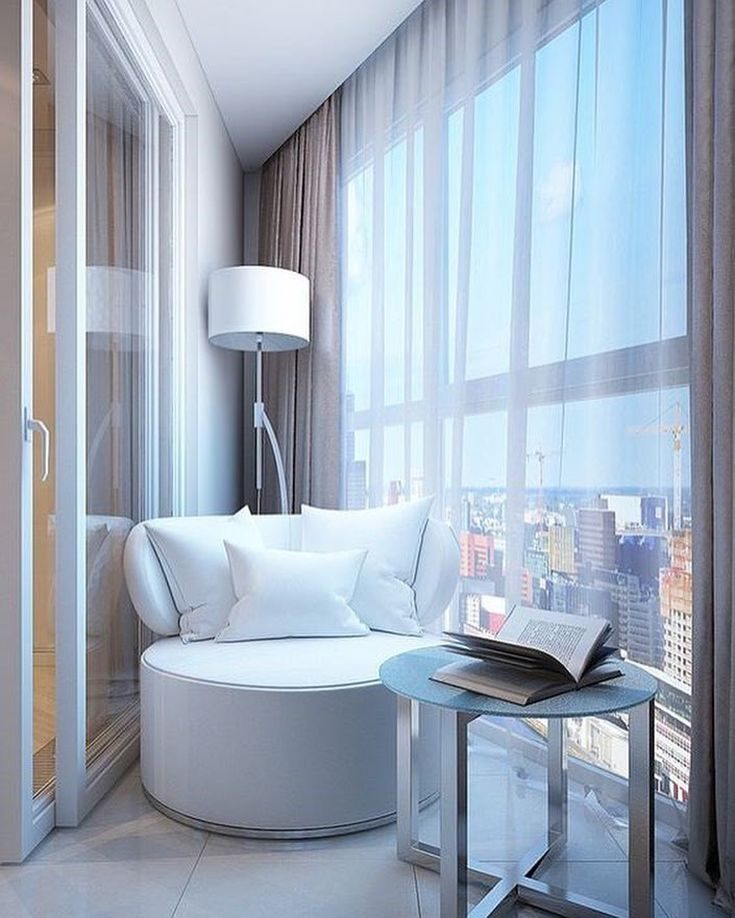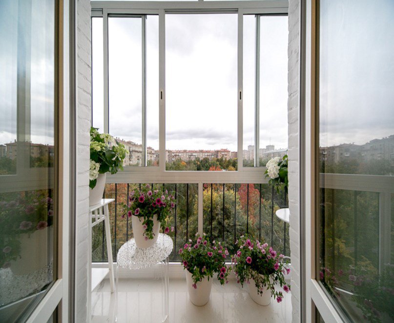 Bodentiefe Kunststofffenster auf dem Balkon wirken originell und stilvoll. Sie werden oft als Option vom Bauträger in einer neuen Wohnung angeboten. Die Montage von Rahmen an der Decke bietet einen Panoramablick, während sich der Ganzglasblock auf ein gemeinsames Dach oder eine gemeinsame Terrasse öffnen kann: Hier werden Schiebeelemente montiert. Die französische Konstruktion mit Aluminiumprofil macht den Balkonraum zu einem gemütlichen Ruheplatz und Privatsphäre kann hier sowohl durch Jalousien oder Rollläden als auch durch Lichtvorhänge gewährleistet werden. Die einteilige rahmenlose Einheit sieht beeindruckend aus, stellt jedoch höhere Anforderungen an die Festigkeit des Sockels.