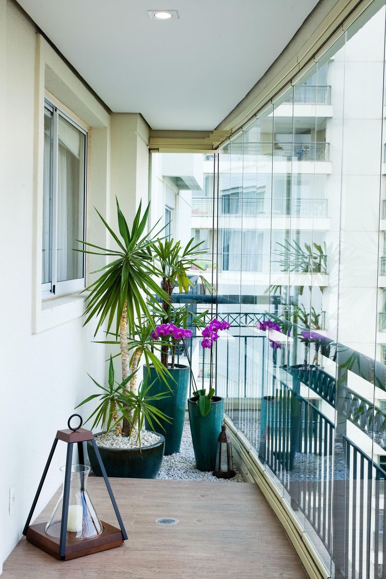 Außerhalb des Grüns wird nur in den mittleren Geschossen eine französische Balkonverglasung verwendet. In Gegenwart dichter Stadtbebauung wird alles, was auf der Loggia passiert, für die neugierigen Blicke anderer offen.