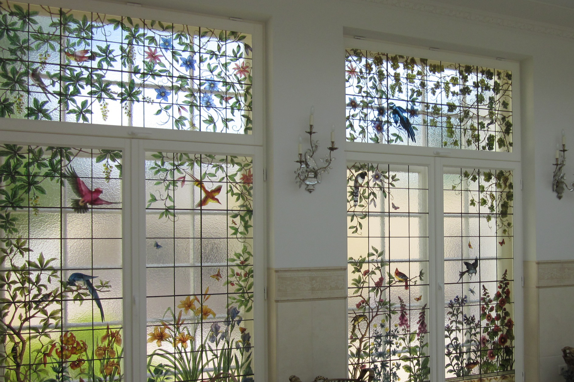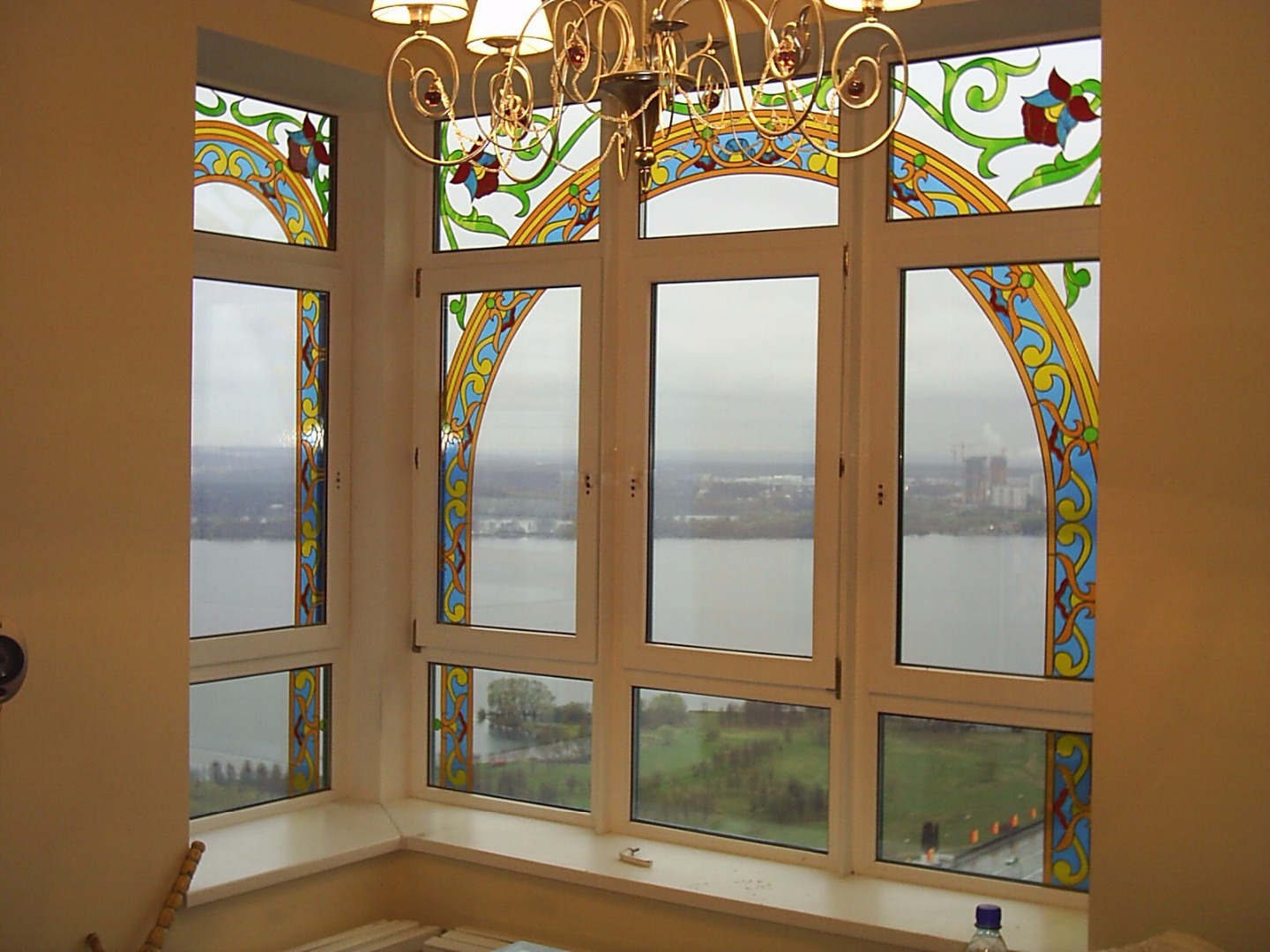 - Glasmalerei. Diese Option kostet Sie am meisten. Buntglasfenster werden auf Bestellung gefertigt, sehen attraktiv aus, bringen Originalität und Chic in die Fassadengestaltung.