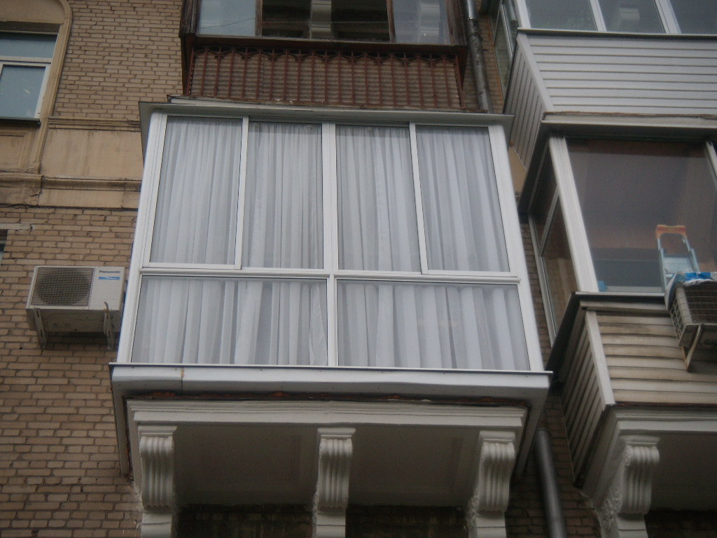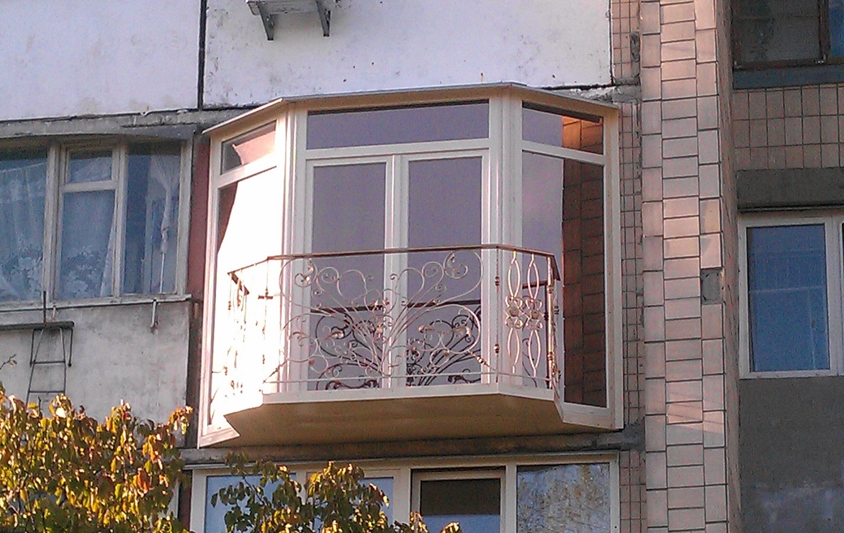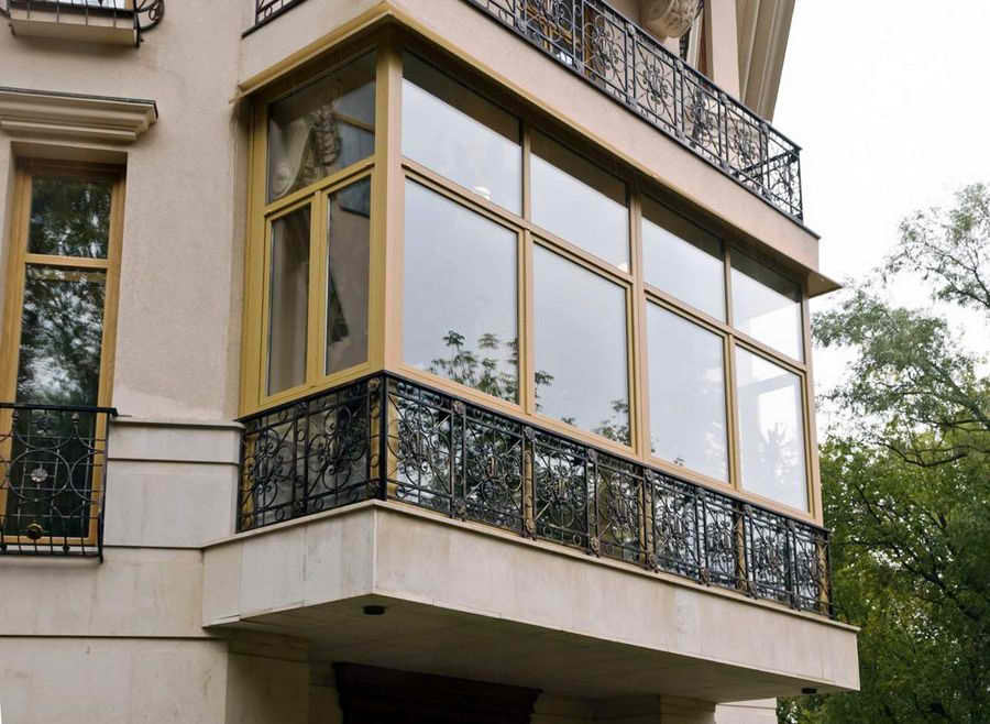 - Demontage alter Verglasung, Brüstung. Wenn das alte Gehäuse ersetzt wird, ist dieser Schritt nicht möglich. Wenn Sie die originalen schmiedeeisernen Geländer oder Brüstungen behalten möchten, können Sie diese einfach nach draußen, außerhalb des montierten Profils oder der doppelt verglasten Fenster verschieben.