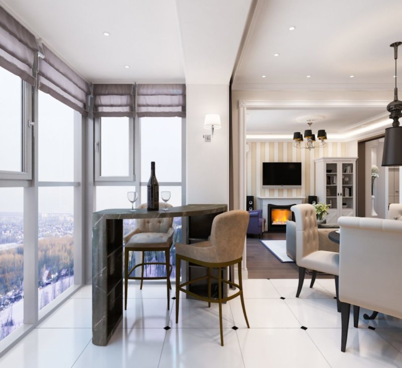 - Warm. Solche Konstruktionen entstehen auf Basis der klassischen PVC-Profil- und Glaseinheiten mit Mehrkammeraufbau. Einkammerversionen mit einem Inertgas im Inneren können ebenfalls verwendet werden. Die Installation von schweren Rahmen erfordert eine Verstärkung der Basis der Balkonplatte und die Installation einer Wärmedämmung an der Fassade und am Boden. Verglasung ist teurer, aber Sie können den Raum einer Wohnung und einer Loggia kombinieren und sie in eine gemütliche Terrasse oder einen Ruheplatz, ein Büro oder ein Mini-Fitnessstudio verwandeln.