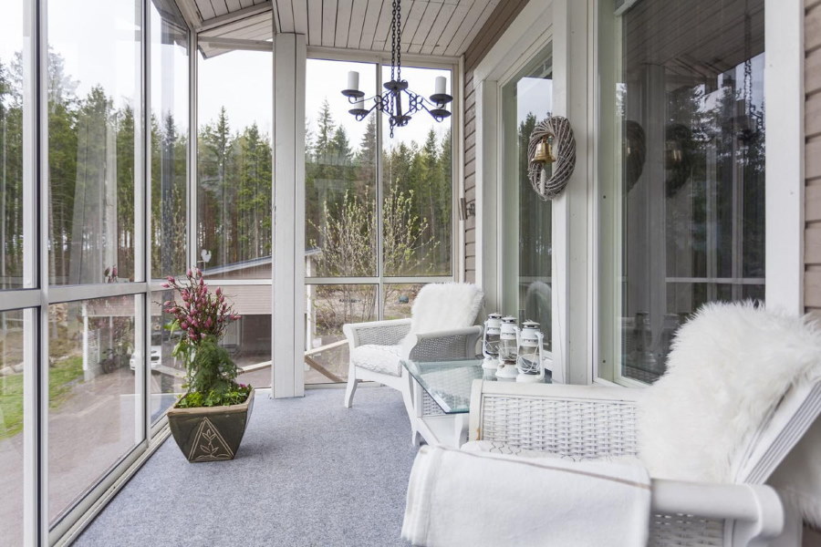 Am einfachsten ist es, die Genehmigung für den Einbau einer französischen Verglasung eines Balkons oder einer Loggia in Mehrfamilienhäusern in monolithischer oder Paneeltechnik einzuholen. Bei Ziegelhäusern mit dünnen tragenden Wänden und Decken kann eine Bodenbewehrung erforderlich sein. In Gebäuden der 30-60er Jahre des XX Jahrhunderts ist es am schwierigsten, sich auf eine solche Sanierung zu einigen. In einem Landhaus ist das Problem viel einfacher gelöst. Dabei kann die Verglasungsfläche von 2 bis 6 Metern reichen und wird teilweise als komplette Umrahmung der Terrasse entlang der Fassade präsentiert. Sie müssen keine zusätzlichen Genehmigungen einholen.