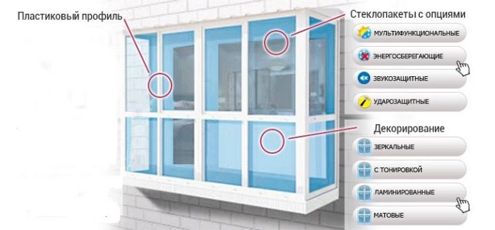 Stattdessen werden lichtdurchlässige Strukturen ganz unten auf dem Balkon oder der Loggia installiert: gewöhnlich, getönt, teilweise mattiert.