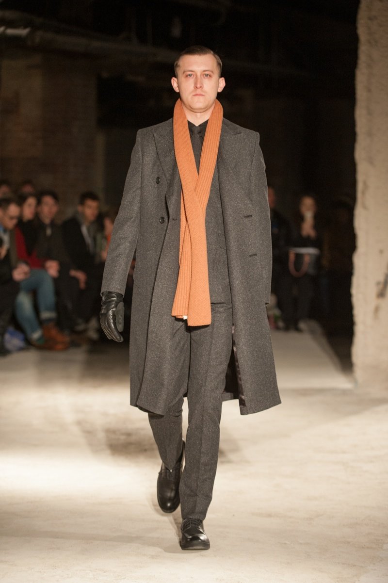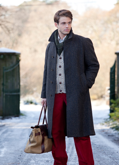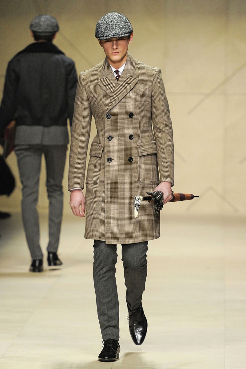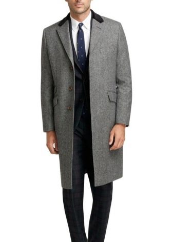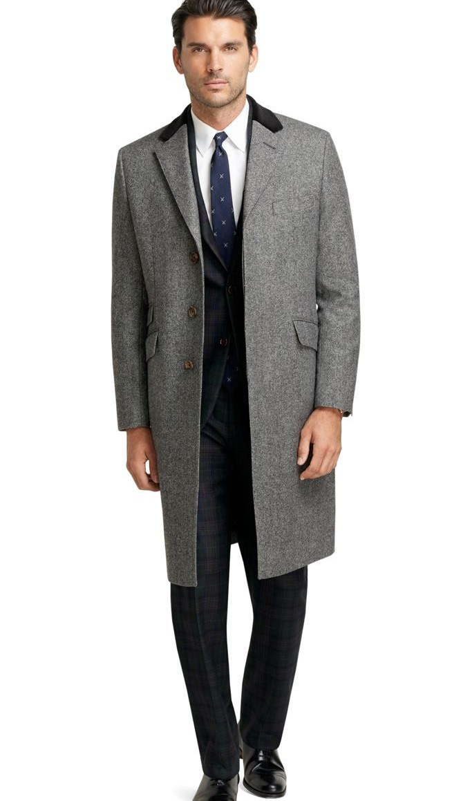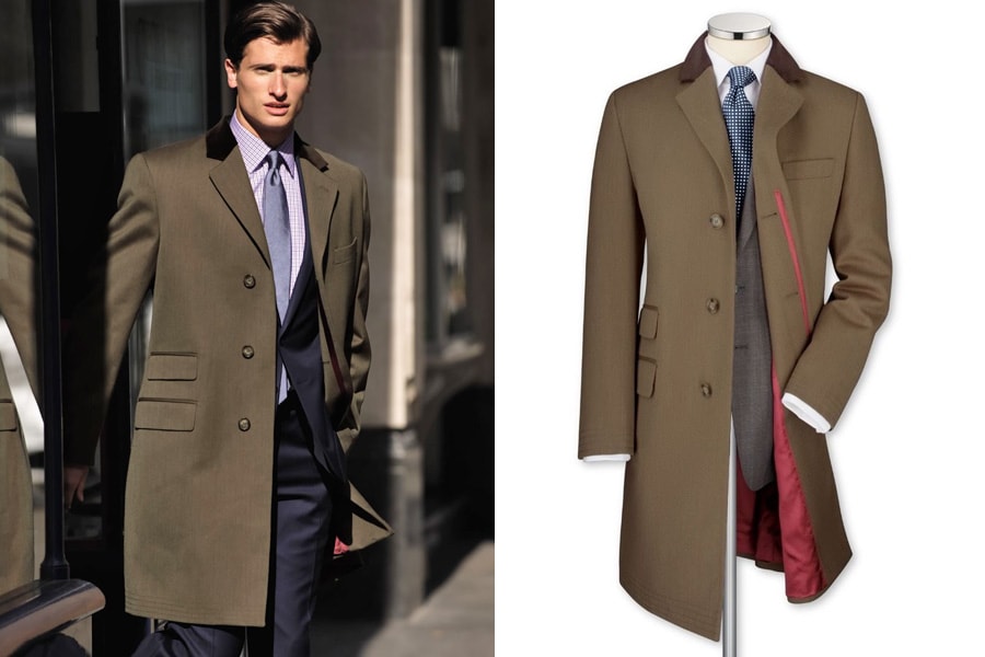 - Crombie. Einreihiger Schnitt mit Geheimverschluss und drei Taschen. Lakonisches, konservatives Modell.