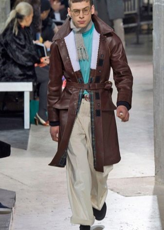 - Leder. Spektakulärer Stoff für extravagante Models, maskulin und brutal. Ideal für das Herbstwetter.
