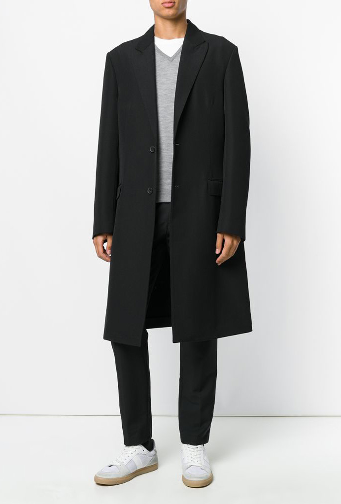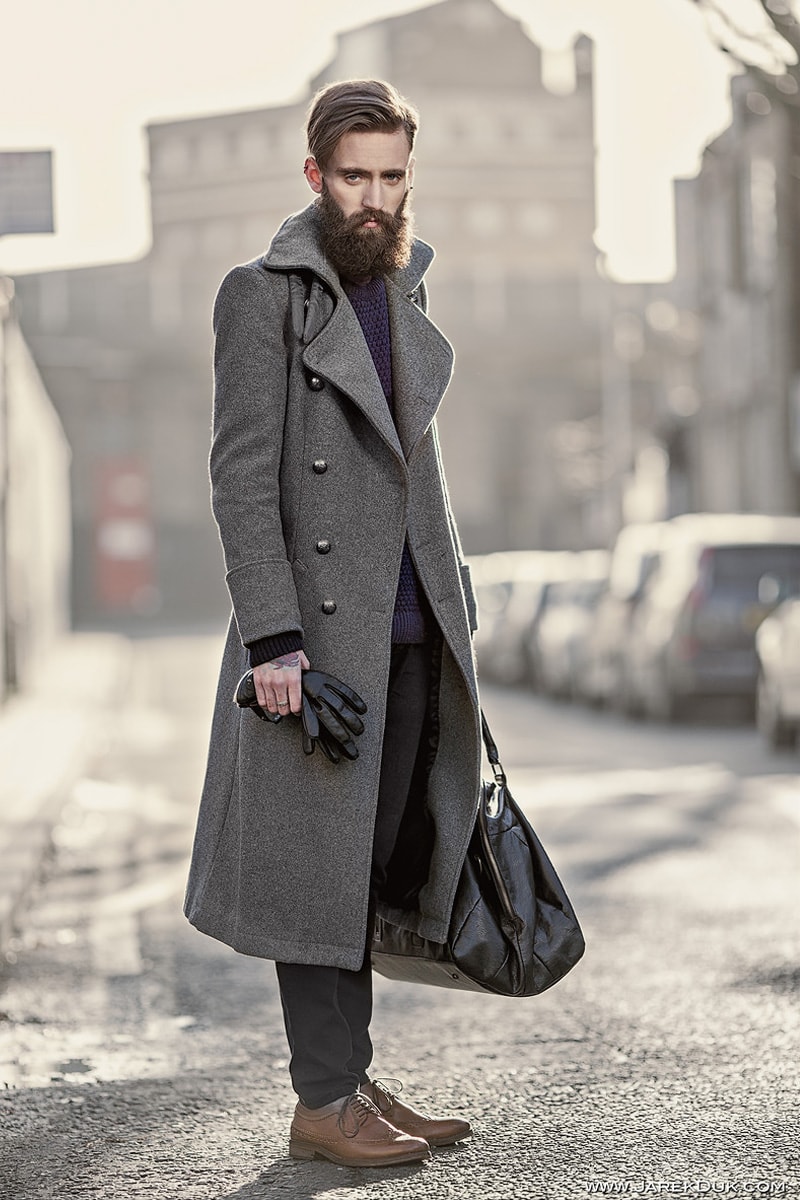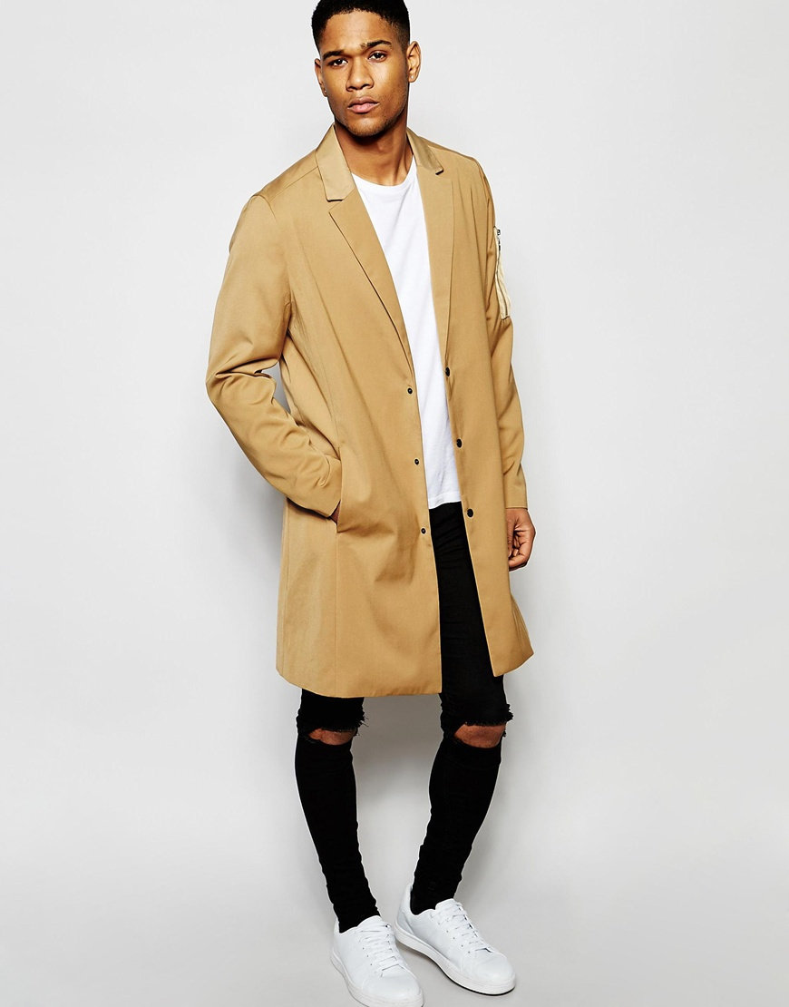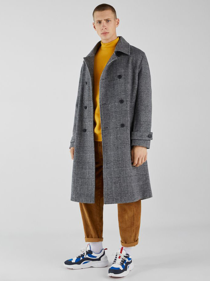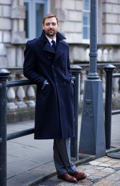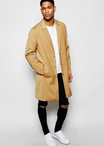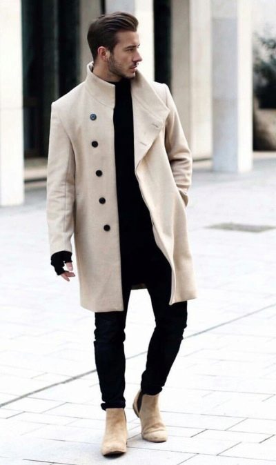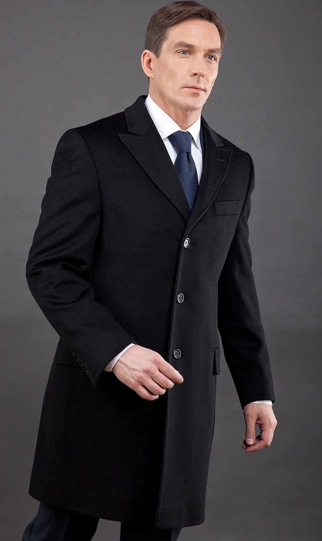 - Angepasster Mantel. Gut für junge Männer und solche mit guten Figuren.