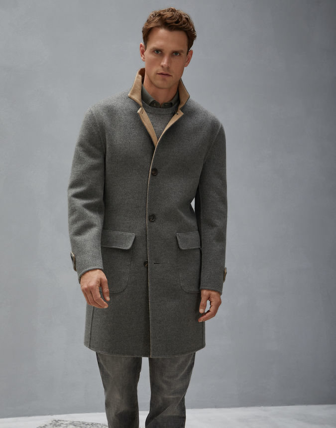 - Covercut. Ein klassischer Mantel aus strapazierfähigem Stoff, sieht gut zu Anzügen und Sachen im lässigen Stil aus.