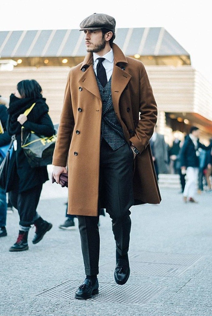 Die Farbgebung der Herrenmäntel ist eher konservativ. Wenn Sie Ihren Mantel nicht oft wechseln möchten, wählen Sie besser ein Modell aus einer klassischen Serie. Jetzt gewinnen helle Nude-Töne an Bedeutung. Junge Männer, die Extravaganz suchen, tragen dunkelgrüne, blaue Mäntel, rauchblau, mit Militärdruck. Es gibt drei Optionen für klassische Paletten.