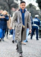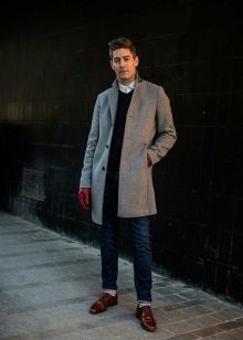 Dinge in Beige, Sand, Lavendel, Hell- und Dunkelviolett, Hellblau, Kornblumenblau oder tiefem Smaragdton lassen sich am besten mit einem grauen Herrenmantel kombinieren. Es wird erfolgreich den Adel von Grautönen und satten Indigofarben betonen.